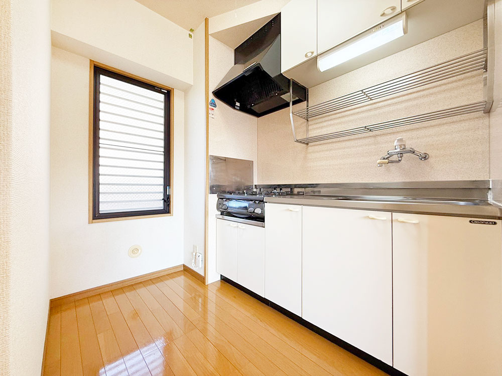 シャワートイレ、二口ガスコンロ、エアコン付き充実設備の1LDKです