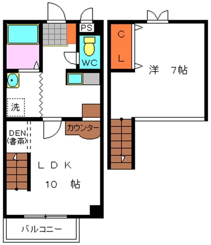 メゾネットタイプの1LDKです