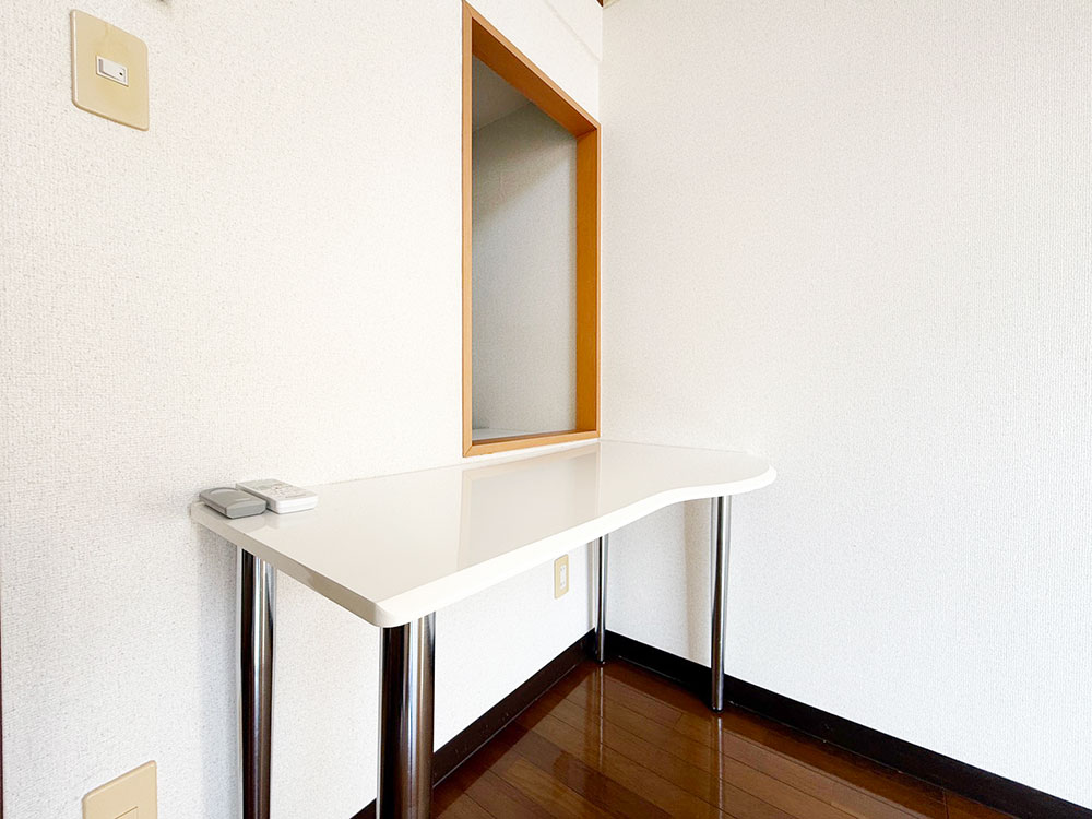 階段下は便利なテーブルが付き。ワークスペースにもなります。