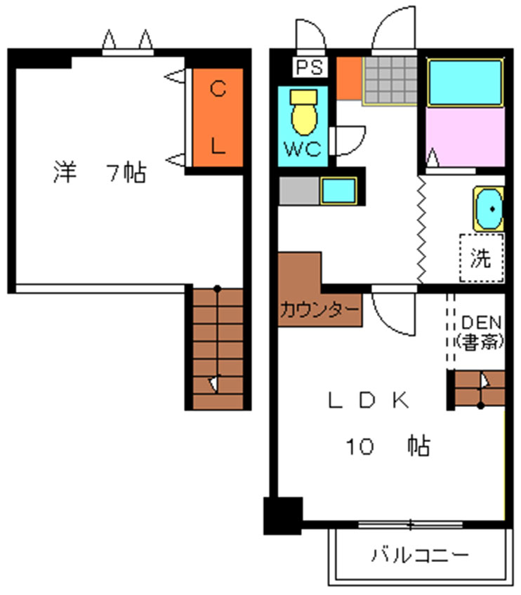 メゾネットタイプの1LDKです
