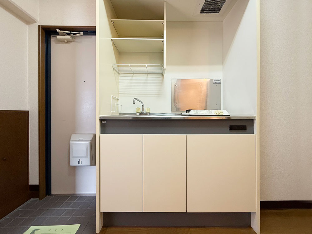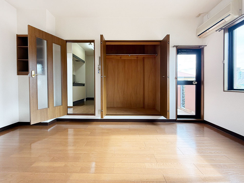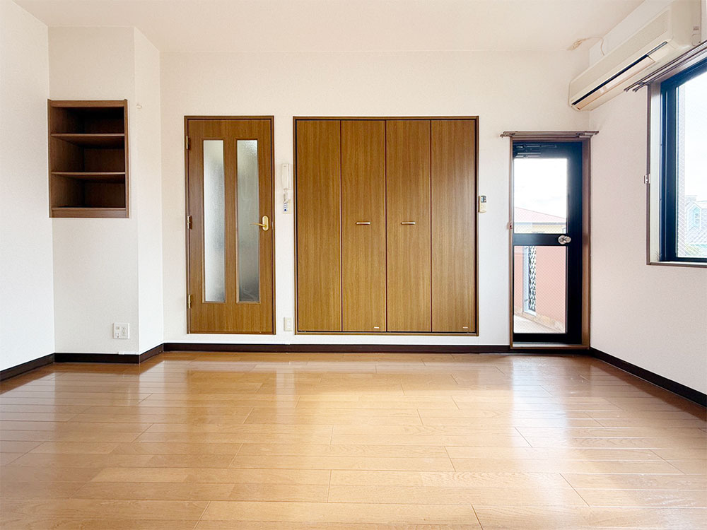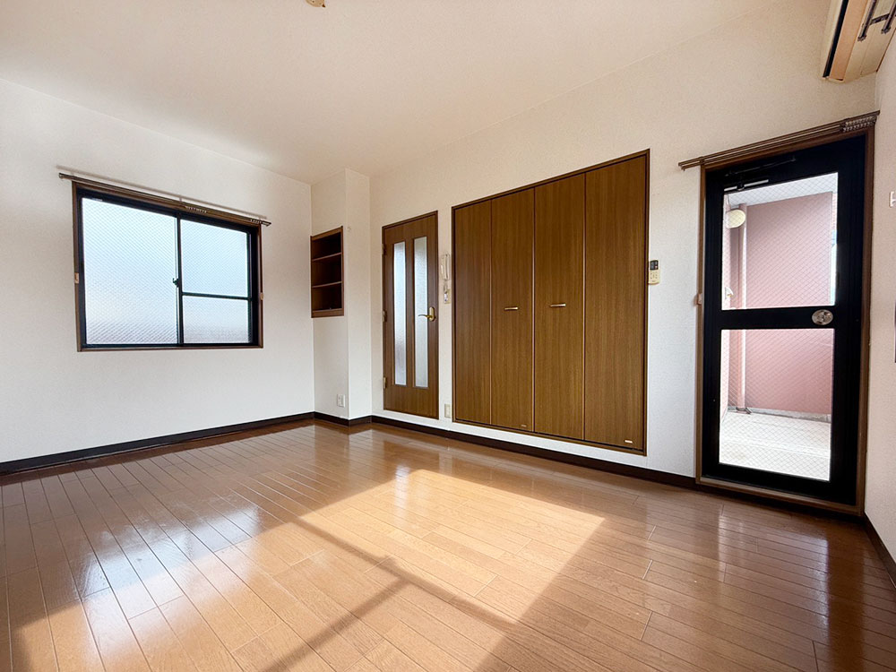1Kタイプでは珍しい二面採光のお部屋です。明るく風通しも良好。