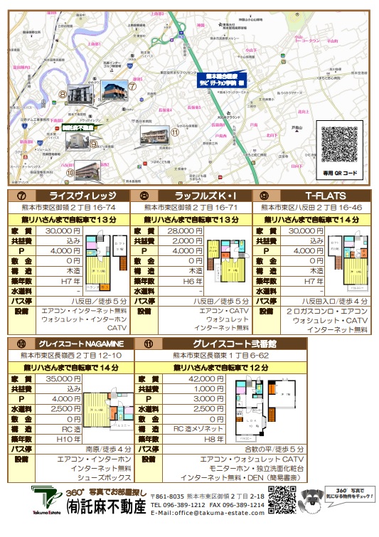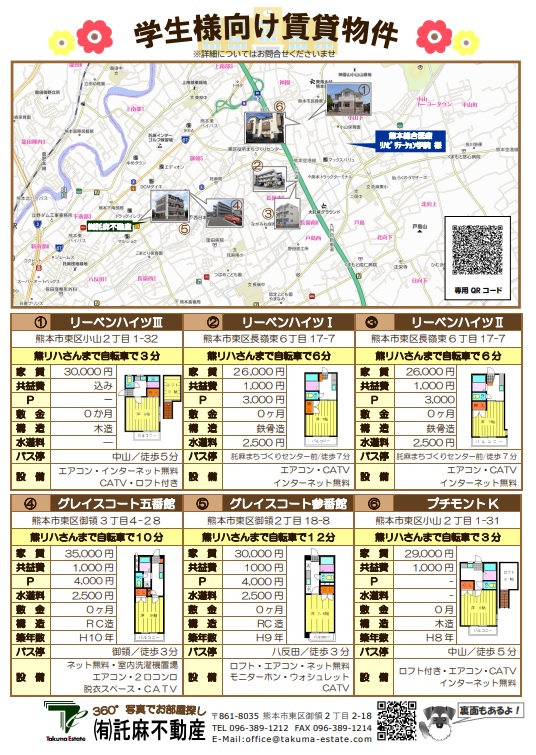 | 1k | グレイスコート五番館 | 熊本市東区御領3丁目 | 106 |